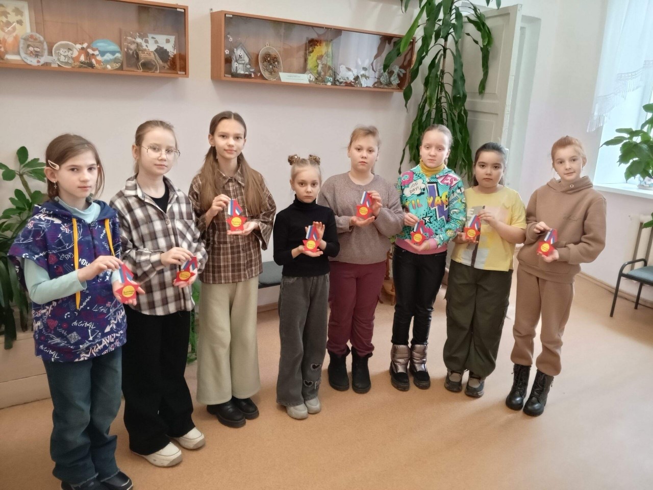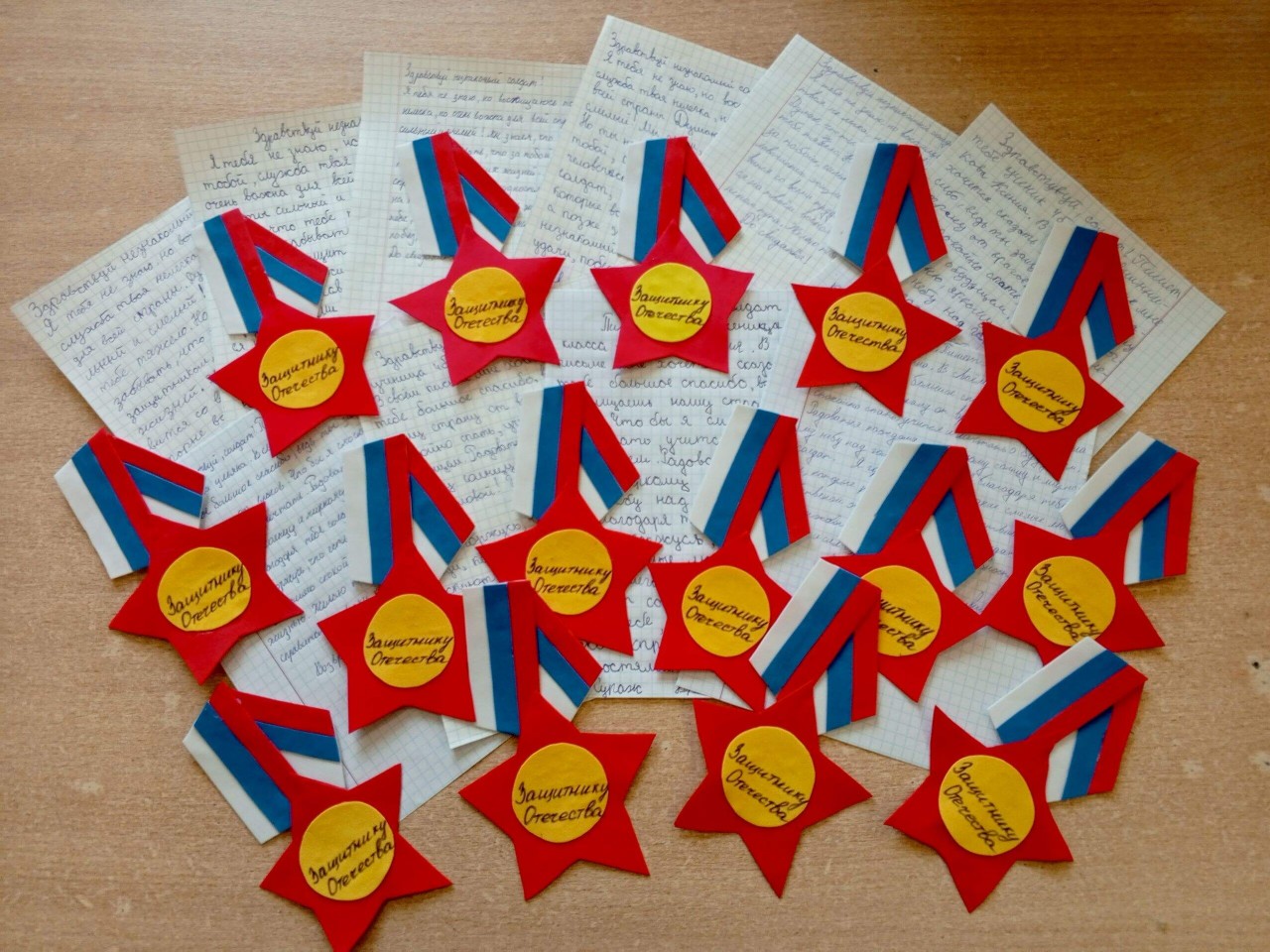 Дети своими руками сделали для солдат, несущих службу в зоне СВО, медали, поздравительные открытки, подписали их добрыми, трогательными словами- пожеланиями, написали письма.